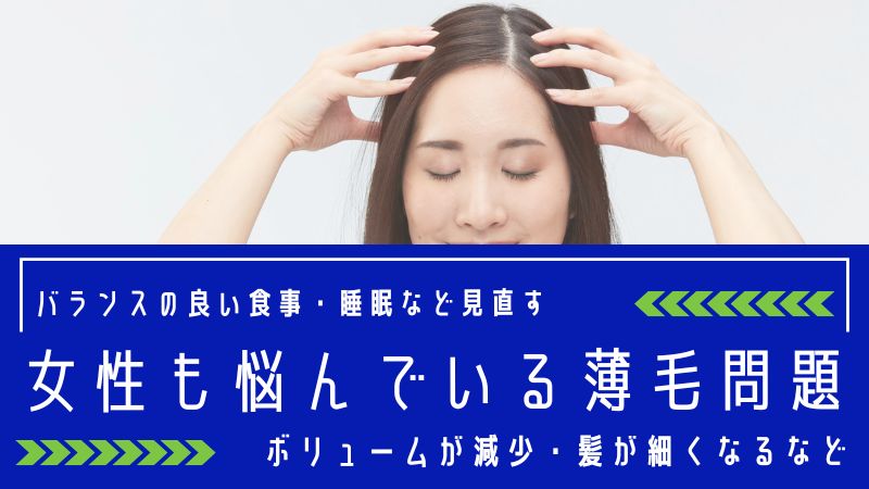 - 心身のバランスを整える:女性の薄毛は、ストレスやホルモンの変化に左右されやすい傾向があります。リラックスできる時間を持ち、睡眠の質を高める工夫も、対策のひとつといえます。